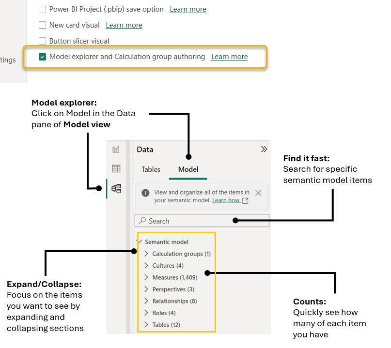 Model explorer public preview with calculation group authoring and creating relationships in the properties pane